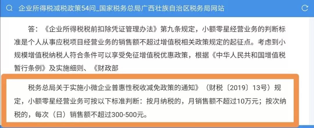 无需发票可税前扣除的小额零星经营业务判断标准,变了!由月销售额不超过3万变成10万!