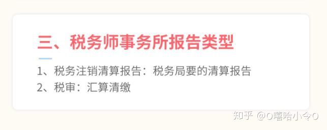 一类是税务师事务所报告类型:主要包括税务注销清算报告和税审报告。