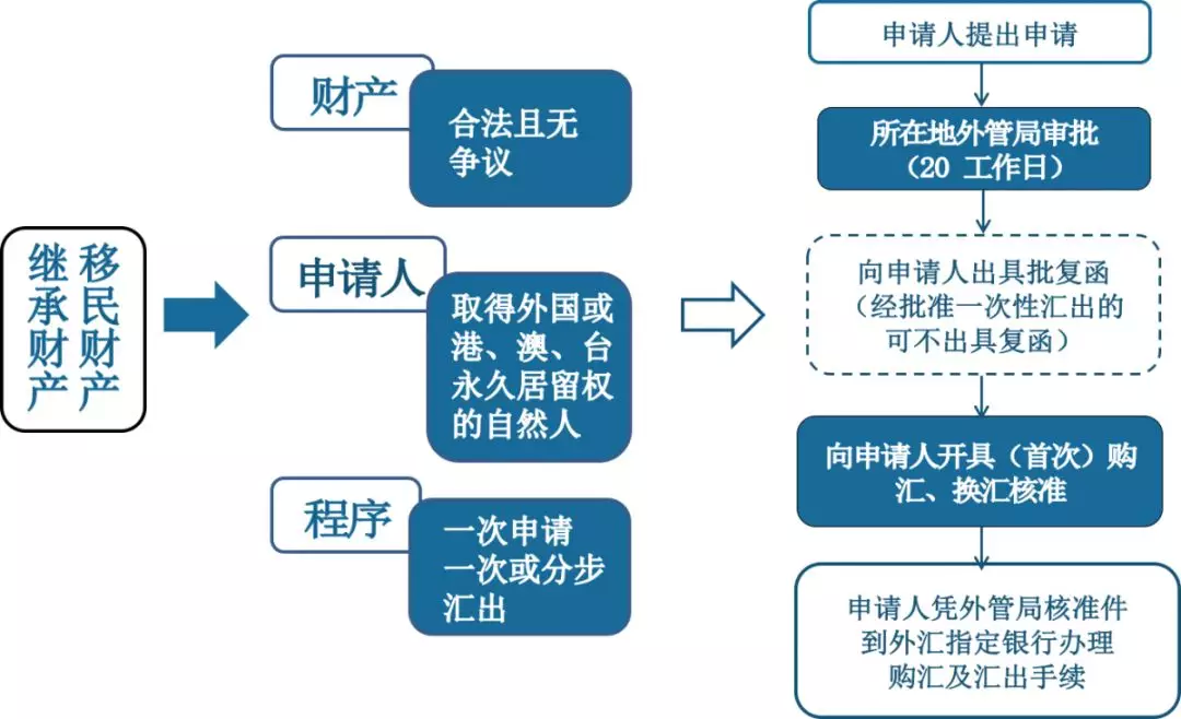 继承财产转移是指外国公民或香港、澳门特别行政区及台湾地区居民将依法在中国境内继承的遗产变现,通过指定银行购汇并汇出境外的行为。