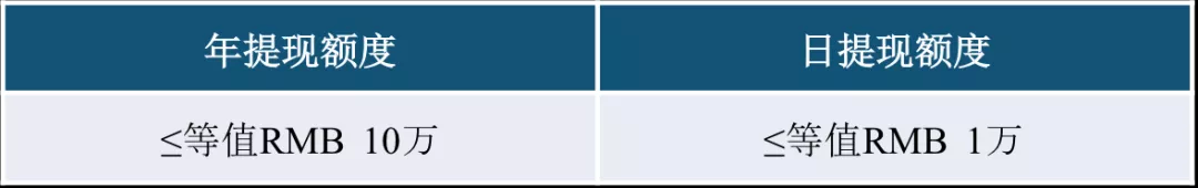境内卡境外提现具有额度限制,包括年提现额度和日提现额度。如下图: