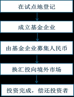 QDII路径自2007年出现以来,在中国政府的鼓励下,一些省市对海外资本项下的投资进行了有益探索,为境内个人和机构又提供了QDLP、QDIE、QDII2等投资方式。其中QDLP与QDIE与QDII投资模式相似,即具备一定资格条件的境内机构主体,通过设立基金企业,在获批准的外汇额度内向境内投资者募集资金,投向海外市场,如下图: