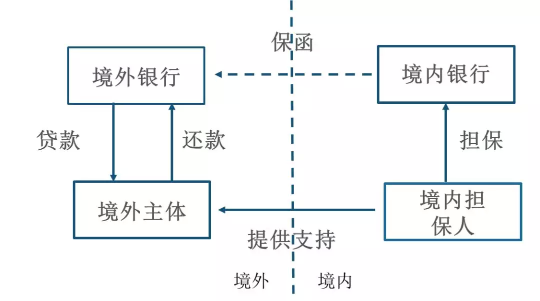 内保外贷是跨境担保方式的一种,具体指担保人注册地在境内、债务人和债权人注册地均在境外的跨境担保。