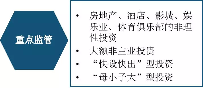 受我国当前对资金出境审慎监管的态度影响,监管部门密切关注以下类型的投资: