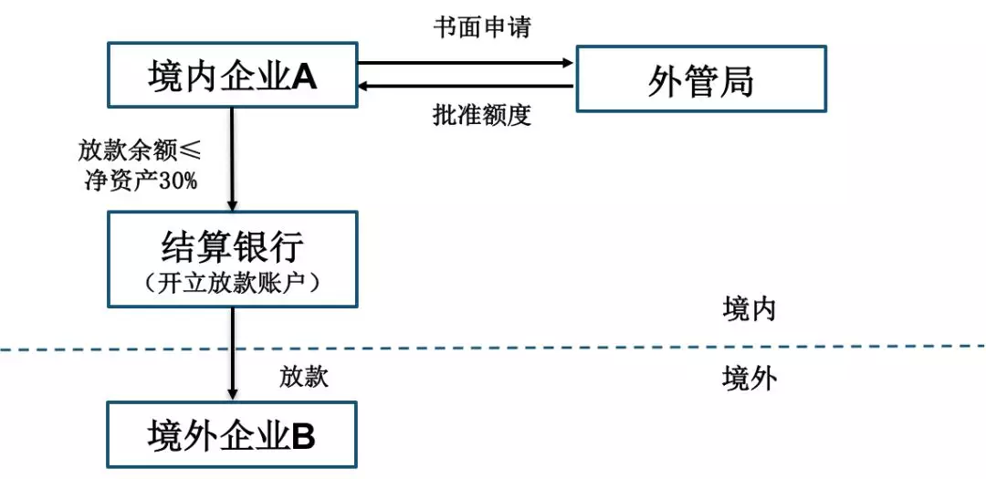 在满足以上要求后,境内企业经结算银行通过以下流程达到境外放款的目的。