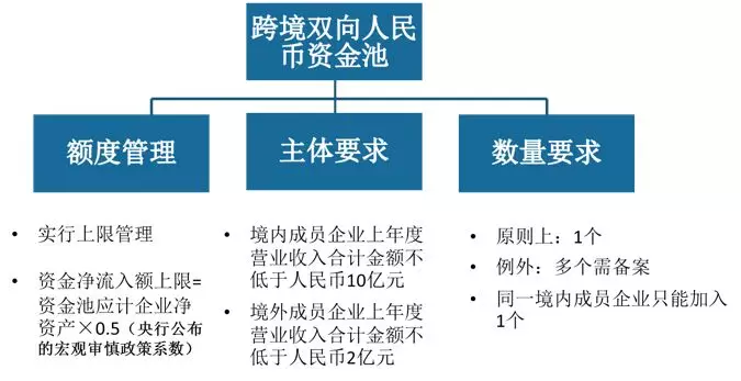 跨国企业集团同样需满足一定的条件,才能实现境内外资金的调剂和归集,如下图: